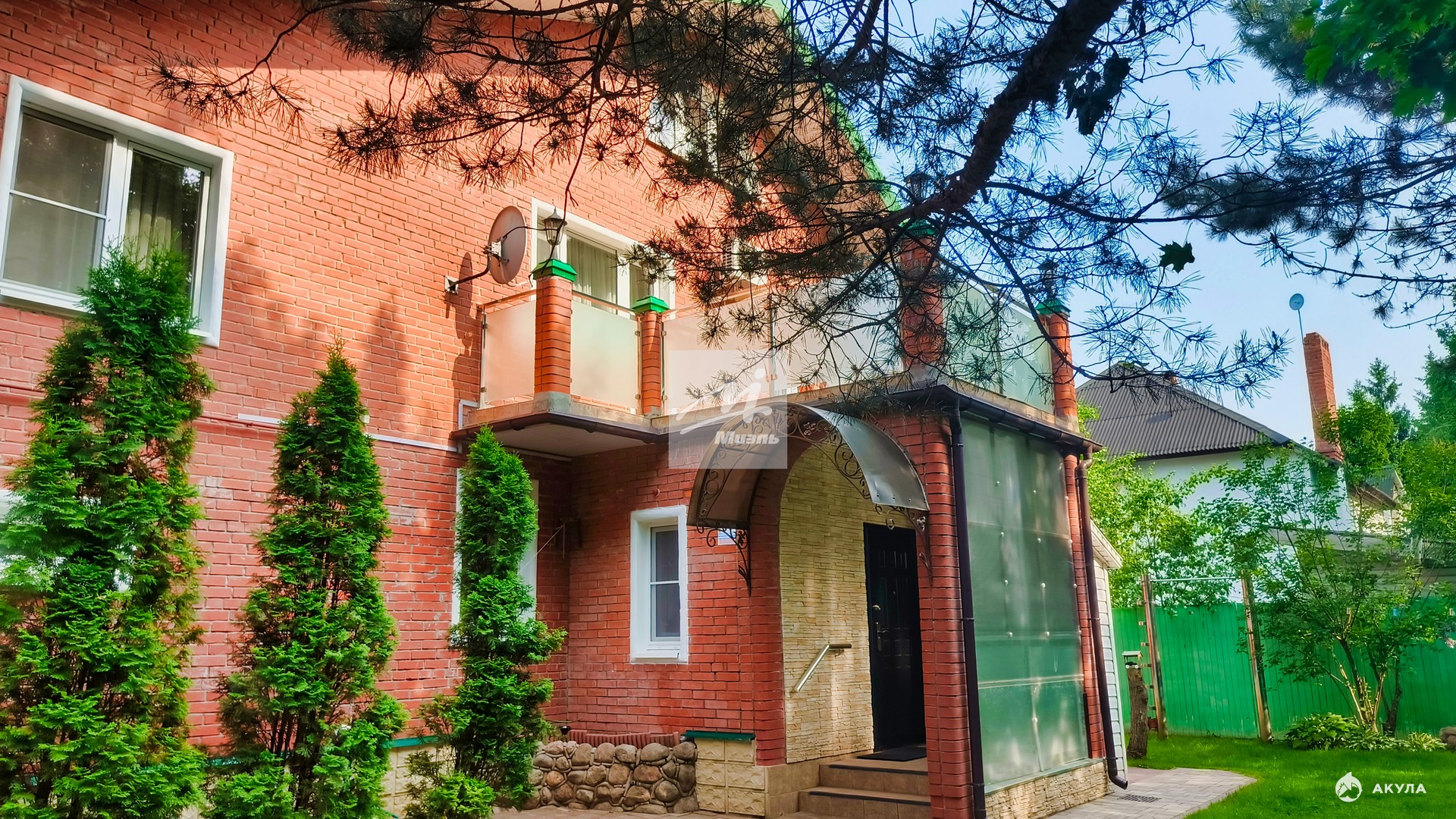 Кирпичный дом (210 м2): 2 этажа и уютная мансарда с 2 кладовками и системой хранения, 2 санузла (один с душевой кабиной), 4 изолированные комнаты и 1 проходная (сейчас это игровая, но может быть использована как угодно), камин, 2 балкона, обустроенный подвал со спортивными тренажёрами и душевой кабиной, сауна, погреб;